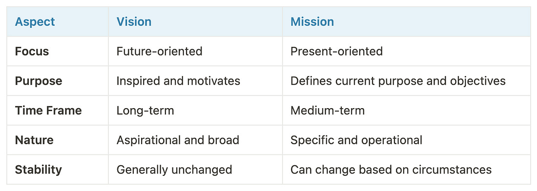 Let’s dive in! Ship faster, with context-aware AI that speaks your languageThis free article is brought to you by today’s sponsor, Augment Code! Augment Code is the only AI coding agent built for real engineering teams. It understands your codebase—across 10M+ lines, 10k+ files, and every repo in your stack—so it can actually help: writing functions, fixing CI issues, triaging incidents, and reviewing PRs. 🎯 Vision vs MissionAs a founder, I was always confused about the difference between vision and mission. To understand their relationship, I believe it’s helpful to view them as part of a bigger hierarchy: