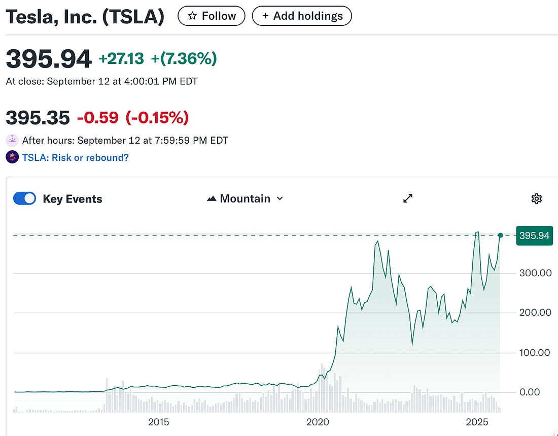 This is Brad DeLong's Grasping Reality—my attempt to make myself, and all of you out there in SubStackLand, smarter by writing where I have Value Above Replacement and shutting up where I do not… CROSSPOST: BRAD MUNCHEN Tesla is Rallying Again. Most Thought it Would Drop (Full Behind Paywall)Fill your boots, as they say. An opportunity to make money both on the way up and on the way down is here again, like last December...Fill your boots, as they say. An opportunity to make money both on the way up and on the way down is here again, like last December…Brad DeLong—not Munchen—here in this section: It is astonishing: the effectiveness of the theory that “we can make money by frontrunning the Big Boys as they manipulate stock prices” in driving short-run asset valuations of stocks on which internet social-media opinion focuses. And, to make the Worm fully Ouroboros, the ability of the Big Boys to actually manipulate stock prices is itself amplified by the availability of an army of options traders who believe they can make money by following this theory: their far out-of-the-money purchases then induce huge amounts of positive-feedback trading by those who sold them the options and need to delta-hedge their positions, and then amplify the delta-hedge on the way up with increasing gamma. Massive short-dated call buying acts as a dog whistle to launch the process. Rallies don’t require fundamentals; headlines about robotaxi “permits” and autonomy “news” serve as triggers to juice options volumes. And, as Brad M. points out, these large “rallies for no reason” have been recurring since 2020; the current one aims at keeping Tesla above $350, then $400, and perhaps $500 into the November 6 planned vote. The incentive narrative: a huge CEO award and potential Tesla-to-xAI investment create reasons for Vested Interests to push the stock now: