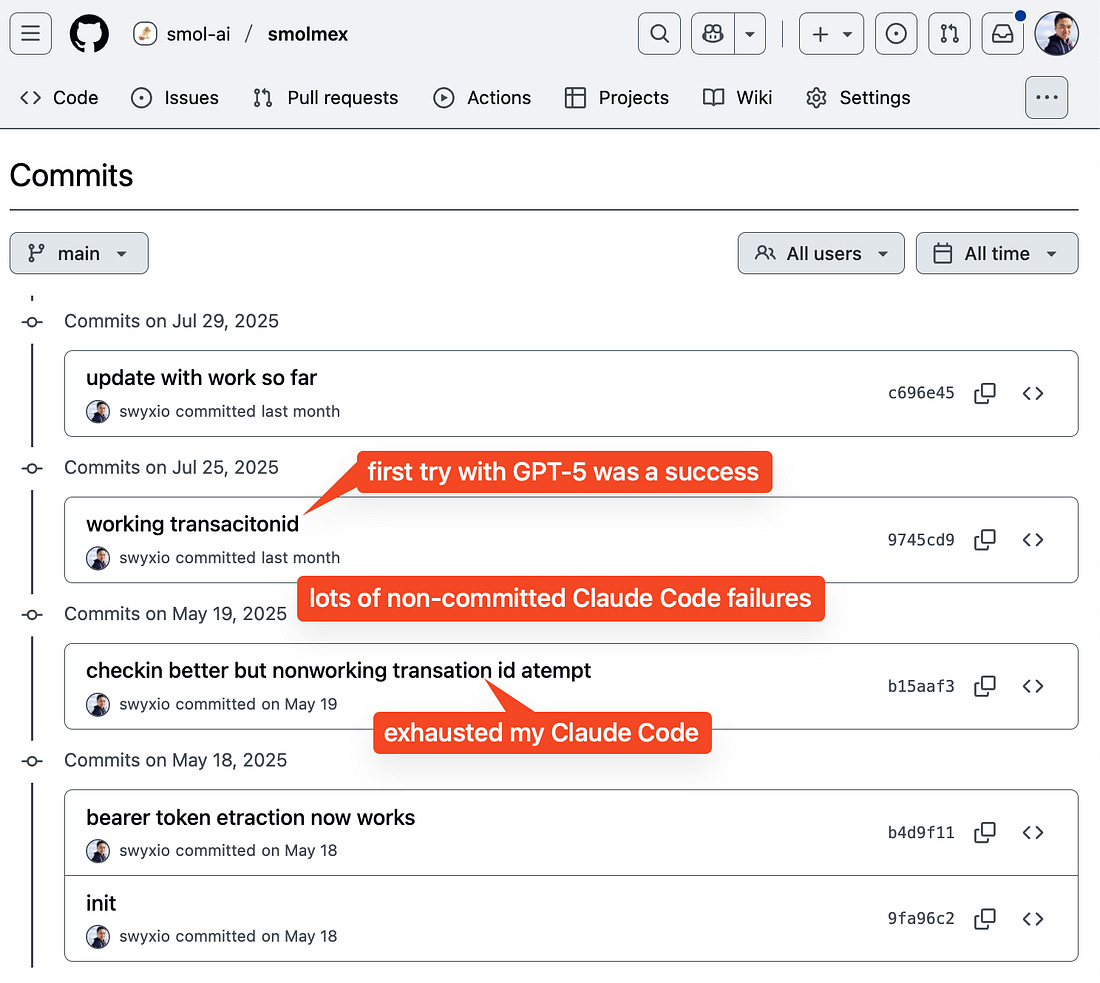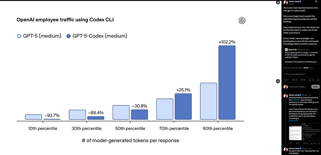 This tenacity judiciously applied is what makes GPT-5-Codex a much more useful agentic coding model all-round, not just optimizing for the most difficult problems only and then requiring a model switcher for dumber models (interestingly, it also doesn’t use ChatGPT’s GPT-5 Router we wrote about): Getting out of Ruts and pushing backGreg: