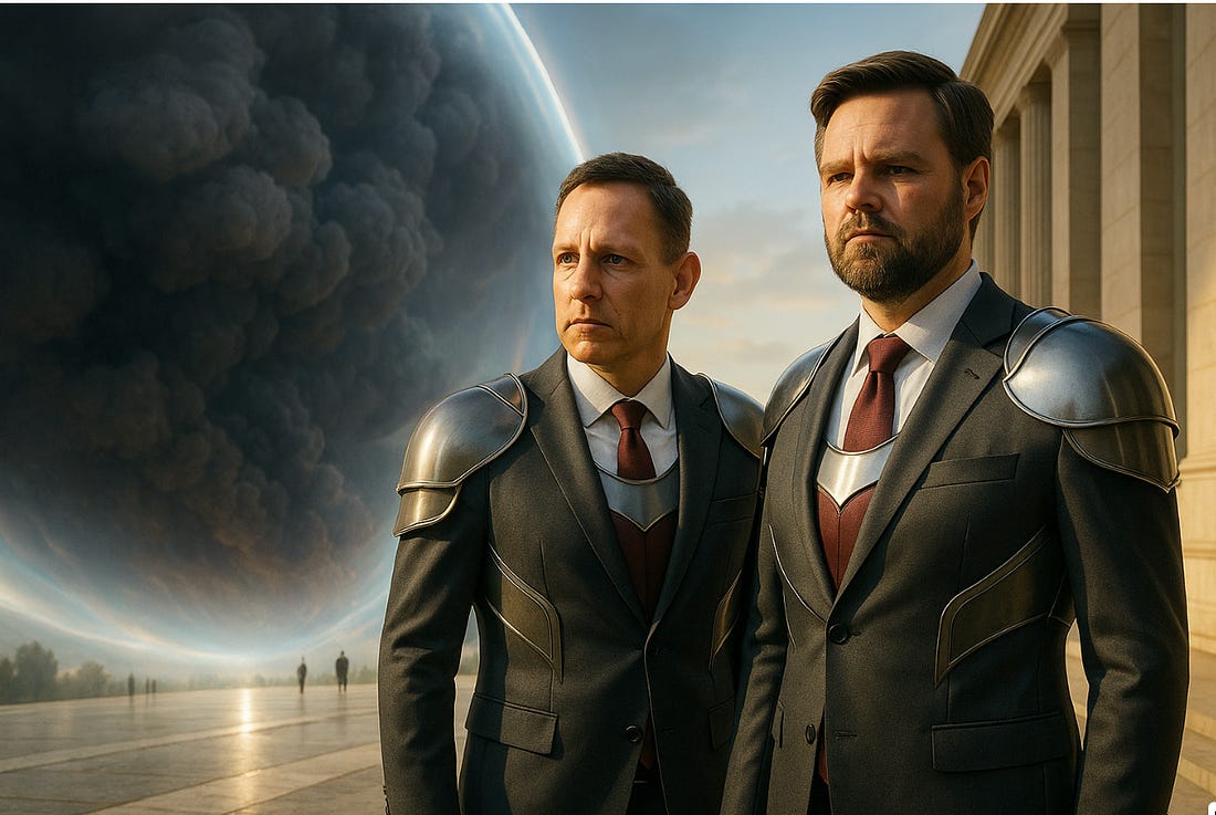 This is Brad DeLong's Grasping Reality—my attempt to make myself, and all of you out there in SubStackLand, smarter by writing where I have Value Above Replacement and shutting up where I do not… On Peter Thiel's AntiChrist“Restrainer” Politics: Billionaire TechBro Peter Thiel, Nazi Political Philosopher-Theologian Carl Schmitt, Pacifist Christians René Girard & Wolfgang Palaver, the AntiChrist & his enemies, & J.D...“Restrainer” Politics: Billionaire TechBro Peter Thiel, Nazi Political Philosopher-Theologian Carl Schmitt, Pacifist Christians René Girard & Wolfgang Palaver, the AntiChrist & his enemies, & J.D. Vance & the scapegoating of the immigrants of Ohio…Peter Thiel’s Antichrist obsession isn’t performance art—it’s a governing theory. Follow the thread from theologian René Girard’s anti‑scapegoating ethic to Nazi Carl Schmitt’s friend‑enemy politics and see where the idea of the “Restrainer” of the AntiChrist turns into a scapegoat-bashing cudgel. Watch Doomsday theology meet real-world surveillance, and anti-immigration ethnicist mobilization reshape tech, politics, and the public sphere. There is a “Second Letter to the Thessalonians”, written by St. Paul. Perhaps. Perhaps not, for there is substantial doubt about whether the author was in fact St. Paul. It might be a forgery by a person or people later on. St. Paul had written in his “First Letter to the Thessalonians” that to morrow might well be the Last Day, for “you yourselves know very well that the Day of the Lord will come just like a thief in the night…” In the “Second Letter” he pulls that back massively.In the “Second Letter” St. Paul—if it is St. Paul—writes: