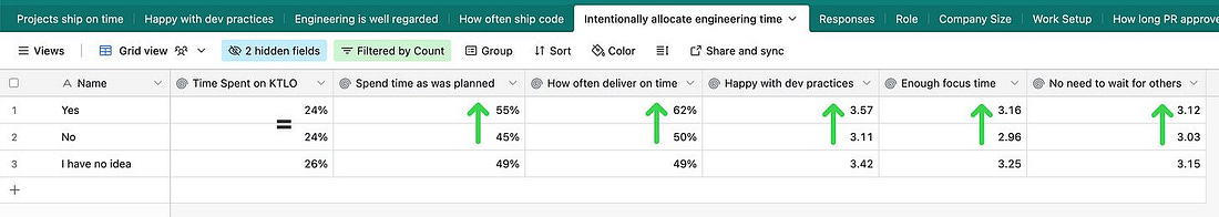When people feel psychologically safe, they treat failures as experiments — data points that improve the system. Engineers become more willing to take calculated risks, surface problems early, and discuss them openly. You can find our full guide below 👇 2) 📊 Intentionally allocating engineering time is a winEarly this year we released a deep industry report on traits and practices that make teams successful. One of the biggest wins that we found is intentionally allocating engineering time across different swimlanes of work (e.g. maintenance vs improvements vs new features). Teams that have fixed allocations on some of these (e.g. typically maintenance), display: