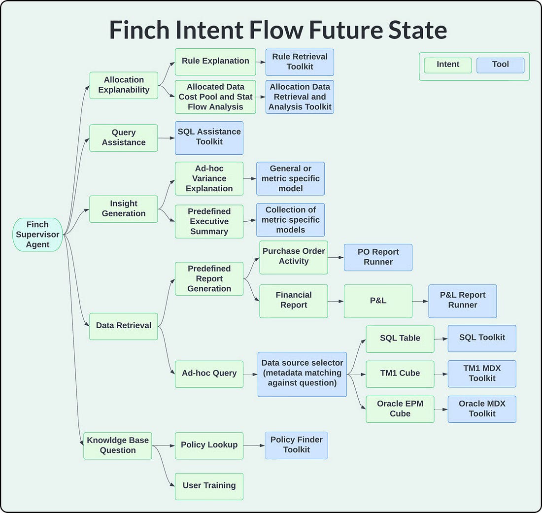 Performance OptimizationFinch is built to deliver answers quickly, even when handling a large volume of queries. Uber Engineering Team optimized the system to minimize database load by making SQL queries more efficient. Instead of relying on one long, blocking process, Finch uses multiple sub-agents that can work in parallel, reducing latency. To make responses even faster, Finch pre-fetches frequently used metrics. This means that some common data is already cached or readily accessible before users even ask for it, leading to near-instant responses in many cases. ConclusionFinch represents a major step in how financial teams at Uber access and interact with data. Instead of navigating multiple platforms, writing complex SQL queries, or waiting for data requests to be fulfilled, analysts can now get real-time answers inside Slack using natural language. By combining curated financial data marts, large language models, metadata enrichment, and secure system design, the Uber Engineering Team has built a solution that removes layers of friction from financial reporting and analysis. The architecture of Finch shows a thoughtful balance between innovation and practicality. It uses a modular agentic workflow to orchestrate different specialized agents, ensures accuracy through continuous evaluation and testing, and delivers low latency through smart performance optimizations. The result is a system that not only works reliably at scale but also fits seamlessly into the daily workflow of Uber’s finance teams. Looking ahead, Uber plans to expand Finch even further. The roadmap includes deeper FinTech integration to support more financial systems and workflows across the organization. For executive users like the CEO and CFO, Uber Engineering Team is introducing a human-in-the-loop validation system, where a “Request Validation” button will allow critical answers to be reviewed by subject matter experts before final approval. This will increase trust in Finch’s responses for high-stakes decisions. The team is also working to support more user intents and specialized agents, expanding Finch beyond simple data retrieval into richer financial use cases such as forecasting, reporting, and automated analysis. As these capabilities grow, Finch will evolve from being a helpful assistant into a central intelligence layer for Uber’s financial operations. See the diagram below that shows a glimpse of Finch’s Intent Flow Future State: