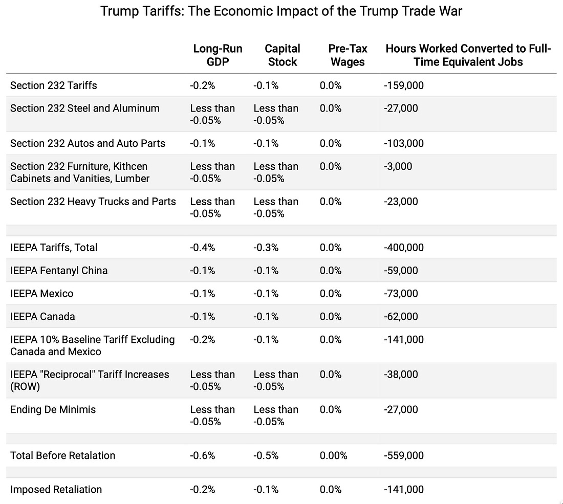 The Tax Foundation GE Model estimates that the fully phased-in effect of the tariffs is to reduce employment in the U.S. by 0.5%—700,000 lost full-time jobs. And, no, this is not a loss that other macroeconomic policy moves can neutralize. It does not estimate the effect on inflation or the price level. I have one very large complaint about the Tax Foundation’s modeling strategy. It is grossly inadequate to the problem. They estimate planned, constant tariffs. We have unplanned, chaotic, constantly moving tariffs. Thus all of the normal adjustments that could be made to reduce and cushion the adverse impact cannot be made. And there are a host of other production- and employment-reducing steps that are now being taken in order for firms to buy insurance against future random chaos-monkey tariff moves on the part of Trump. My personal guess is that the actual likely damage is perhaps five times larger, plus added additional risk-aversion general-equilibrium effects arising because foreign powers will not simply retaliate to imposed tariffs, but understand that every point of integration of their economies with the United States—whether viewing the U.S. as customer, supplier, or value-chain participant—is an extra point of potential attempts by Trump and his band of grifters to try to exert leverage. But step back: The deeper point and argument is one that we have known since before Orwell: the point of doublethink is not to channel thought and analysis, but rather to demonstrate power. Keep reading with a 7-day free trialSubscribe to DeLong's Grasping Reality: Economy in the 2000s & Before to keep reading this post and get 7 days of free access to the full post archives. A subscription gets you: