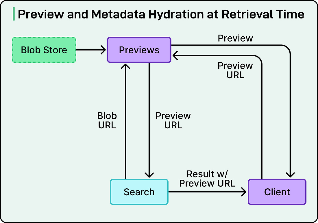 This metadata-first approach provides a lightweight foundation for search functionality while keeping processing overhead minimal. The team plans to selectively incorporate deeper content analysis techniques like semantic embeddings and optical character recognition in future iterations, but starting simple allowed them to ship faster. Geolocation-Aware Retrieval SystemAnother feature Dropbox built into multimedia search is the ability to find photos and videos based on where they were taken. This geolocation-aware system works through a process called reverse geocoding. See the diagram below: During indexing, when a file contains GPS coordinates in its metadata, Dropbox converts those coordinates into a hierarchical chain of location IDs. For example, a photo taken in San Francisco would generate a chain linking San Francisco to California to the United States. This hierarchy is crucial because it enables flexible searching at different geographic levels. At query time, when a user searches for something like “photos from California,” the system identifies that “California” is a geographic reference, validates it against a cached mapping of location IDs, and retrieves all photos tagged with that location or any of its child locations, like San Francisco. Since the number of known geographic locations has a manageable size, Dropbox caches the entire location mapping at service startup, making lookups extremely fast. This approach elegantly handles the challenge of location-based search without requiring users to remember exact locations or browse through folder structures organized by place. Just-In-Time Preview GenerationThe most interesting architectural decision Dropbox made was generating previews on demand rather than pre-computing them for all files. This choice directly addresses the preview generation dilemma mentioned earlier. The rationale was straightforward. Dropbox ingests files at a rate roughly three orders of magnitude higher than users query for them. Pre-computing previews for every single multimedia file would be prohibitively expensive, especially since only a small fraction of indexed files actually get viewed during searches. Instead, when a search returns results, the system generates preview URLs that the frontend can fetch. These URLs point to a preview service built on top of Riviera that generates thumbnails and previews in multiple resolutions on the fly. To avoid repeatedly generating the same preview, the system caches them for 30 days, striking a balance between storage costs and performance. See the diagram below: The team optimized for speed by running preview URL generation in parallel with other search operations like ranking results, checking permissions, and fetching additional metadata. This parallelization significantly reduces overall response time. When users want to see more detail about a specific file, such as camera information or exact timestamps, the system fetches this metadata on demand through a separate endpoint, keeping the initial search response lean and fast. See the diagram below: Technical Trade-Offs and Design DecisionsBuilding the multimedia search feature required the Dropbox engineering team to make deliberate choices about where to invest resources and where to optimize for efficiency. Cost vs. Performance DecisionsThe team made three key trade-offs to balance system performance with infrastructure costs.