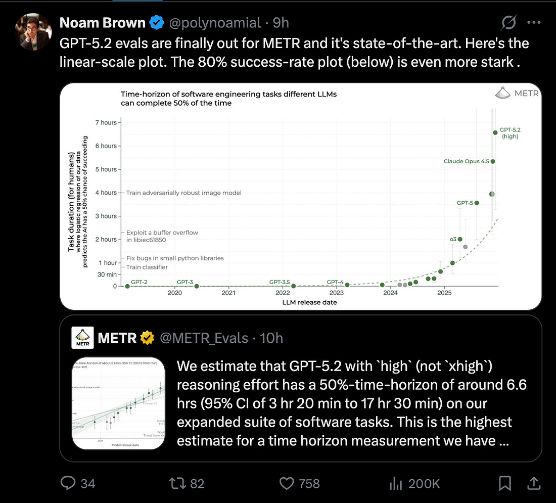 It is our policy to give the title story to AI companies that cross into decacorn status, to celebrate their rarity and look back at their growth, but it seems that it is less rare these days… today not only did Sequoia, a16z and ICONIQ lead the Eleven@11 round (WSJ), but it was promptly upstaged by Cerebras which, after their 750MW OpenAI deal (valued at $10B over 3 years), had a DOUBLE decacorn round at $1B at $23B from Tiger Global… only 5 months after they were valued at $8B. It’s also the 1 year anniversary of Vibe Coding, and Andrej has nominated Agentic Engineering as the new meta of the year, even as METR anoints GPT 5.2 High as the new 6.6 hour human task model, beating Opus 4.5, and sama announces 1m MAU of Codex.