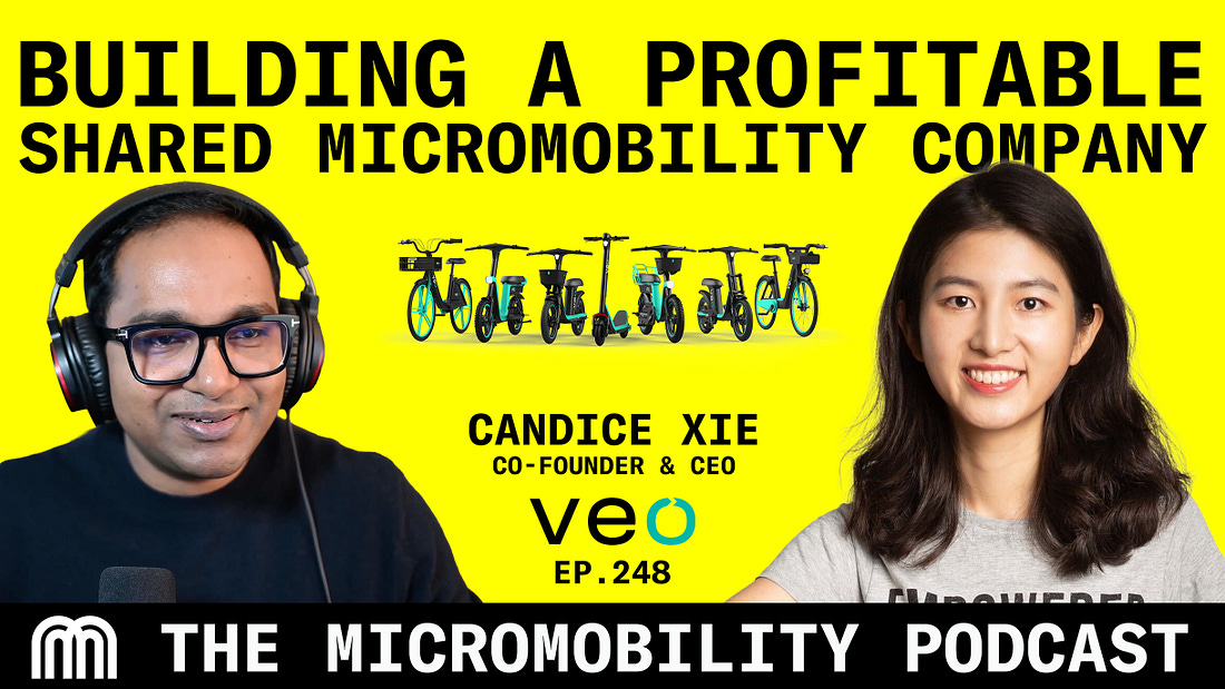 Dott Launches New Fleet in Bristol and BathBird Canada Launches Scooters and Bikes in Penticton, Bosch Launches Connected Platform for eBike Services, ENGWE Unveils ZIP Folding E-Bike, and more...Fresh rides, bold takeovers, and everything in between. Micromobility Weekly is your pit stop for the industry’s sharpest twists, turns, and takeovers. Come Ride Along! Got Your Micromobility Moment To Share? Email - press@micromobility.io Hooked but not subscribed? 👀 Now’s the time. You’ll thank yourself later. 🚨 Announcing the Micromobility CEO’s Panel 🎙️We are recreating one of the most defining conversation from our first Europe conference in Berlin. Back in 2019, the Micromobility executives panel brought together leaders from Circ, Voi Technology, Spin, TIER, GROW and Wind. Join McKinsey, Rivian’s ALSO, LYFT, RYDE, Dott, NextBike, POLIS, Urban Sharing, Navee, CityFi, Valeo, XYTE, Vmax, Microlino, Valeo, Standab, Atom and many others! And to find all about Micromobility America | Nov 11-12 | Palace of Fine Arts, SFO - HERE! What You Need to Know TodayHow Veo Built a Profitable Shared Micromobility Company with Candice Xie, Co-founder and CEO of VeoIn this episode of the Micromobility Podcast, Prabin Joel Jones sits down with Candice Xie, Co-founder and CEO of Veo, to explore how a company that raised just $16m built one of the only genuinely EBIT-positive shared micromobility businesses in the United States. Candice walks through Veo's journey from a garage in Chicago to over $50m in revenue, covering the decision to build their own hardware, why starting on university campuses was the right call, and what operational discipline actually looks like in a business this hard to make profitable.