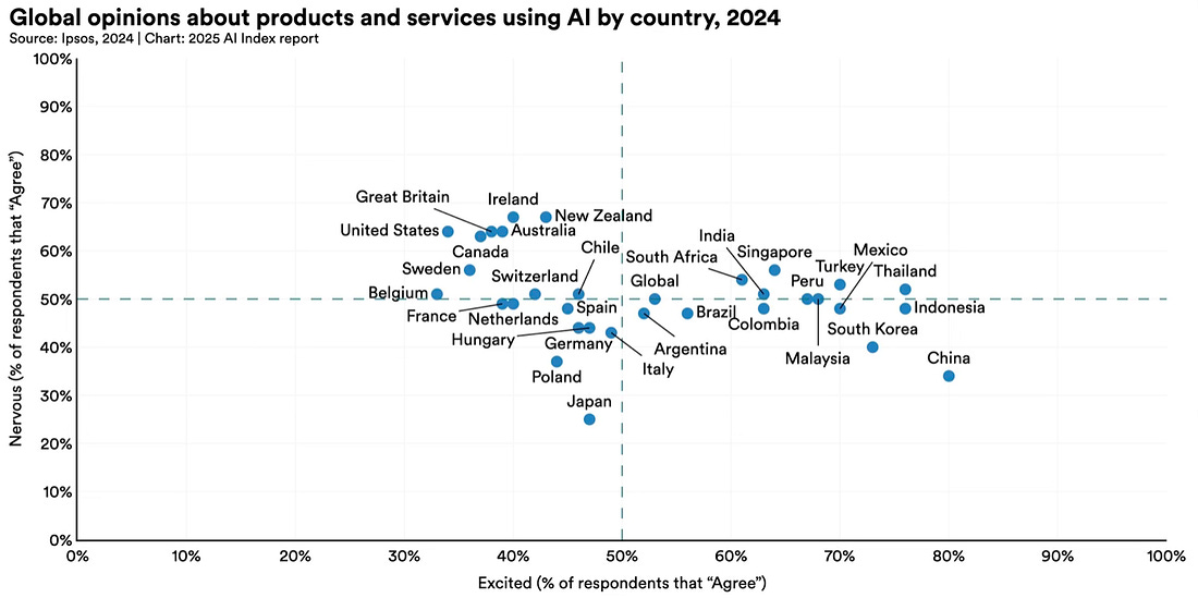 Government agencies are offering multimillion-yuan subsidies to startups using OpenClaw. Alibaba’s DingTalk gave out unlimited API calls through March 31; developers could deploy for as little as $1.4. A whopping 83% of survey respondents in China said AI products and services were more beneficial than harmful. In the United States, only 39% agree.