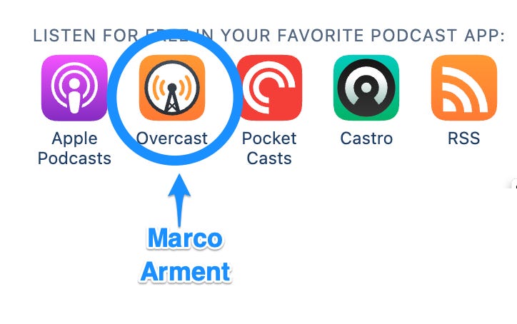 and so on. And do note that I am told that Microsoft has just changed its terms of service to state that CoPilot is “for entertainment purposes only”. To be fair, there are people who claim that OpenClaw—tagline: “the AI that actually does things”—<https://openclaw.ai/> is getting close, at least in the large-but-limited domains of programming, scheduling, editing, summarizing, and, since SEO and chasing ad revenue have poisoned Google, searching.) But now let us start over: There is a semi celebrity-tech influencer <https://marco.org/2026/04/01/letter-to-john-ternus> restauranteer <https://www.instagram.com/thealbatrossob/>-auto enthusiast <https://carbuzz.com/rivian-launches-first-ad-campaign/>-podcaster <https://atp.fm/>-podcaster spouse <https://www.tiffanyarment.com/>-programmer <https://overcast.fm/> named Marco Arment <https://marco.org/>. As a programmer, Marco is the kind of programmer whom Steve Jobs would have called “a pirate”, a word that for Jobs had a strongly positive valence, as in “it’s better to be a pirate than to join the navy. Marco’s first big project was as one of the two people building the original Tumblr <https://www.tumblr.com/>. His second was Instapaper <https://www.instapaper.com/>. Both demonstrating that a single person who actually touches the codebase every day can carry an astonishing amount of weight if they’re ruthless about scope and opinionated about what the product is for. And now—well, go to the landing page of pretty much any podcast and you will see something like this: As a programmer, these days Marco is podcast player OverCast, and podcast player OverCast is Marco. OverCast is perhaps fifth, perhaps eighth, in podcast players in terms of use. It is quite probably the second or third in terms of use by people vociferous enough to have and express opinions about podcast players. I guess that OverCast has perhaps a number of monthly active users in the low seven figures. Two years ago Apple Podcasts began to deploy transcripts for every podcast it served. And Marco’s reaction was “oh crap!” He then saw a world in which serving transcripts was a table-stakes feature—a podcast player that did not offer transcripts was unambiguously significantly worse than one that did, and worse by a large margin. But transcripts are serious work, and serious work in the write-once-run-everywhere mode, with your per-unit fully-amortized cost inversely proportional to your user base. With only 1/30 of the scale of Apple Podcasts, and with podcast generation requiring serious “AI” work, how could Marco possibly over transcripts as a feature and still make any money at all from OverCast? As a podcaster, Marco is one of the triumvirate that is the Flagship Podcast of People Who Wanted to Make an Auto Enthusiast Podcast But Found They & Their Audience Were Much More Lively When the Topic Was Tech: the Accidental Tech Podcast, ATP <https://overcast.fm/>. And on episode 683 of ATP <https://atp.fm/683>, he tells the story of what he did: It starts: